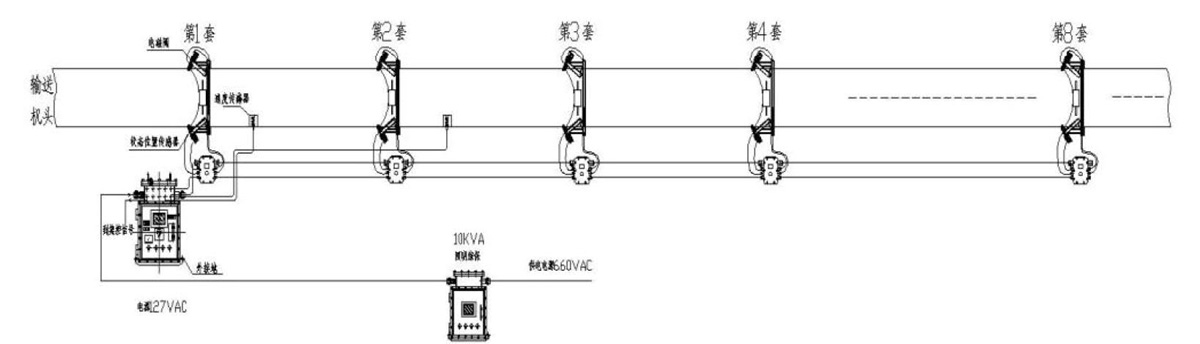 主要安装在皮带高张力区域附近(取决于皮带机类型、倾角、长度、倾角变化点、驱动方式、驱动装置与头部滚轮距离等因素)