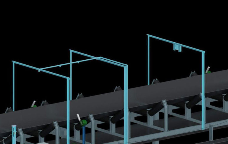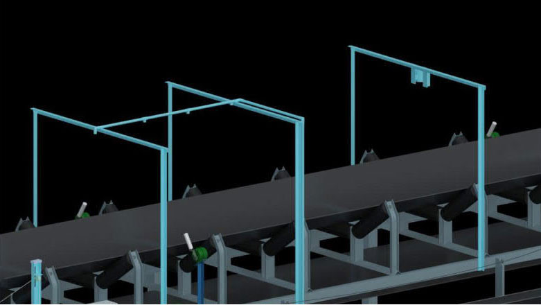 2.4 安装位置!红外扫描测温仪:以输煤皮带为基准面,水平安装在基准面正上方150cm处,红外扫描测温仪固定支架采用国际金属管材,并做防腐防锈处理。将两组喷头(每组至少3个喷头)沿输送机运行方向布置在探测器的下游,沿输煤传送带方向间隔依次均匀排放,均匀、完整覆盖输煤传送带需喷淋区域覆盖面积满足要求。一般情况下,3米左右的喷淋区域,可以覆盖明火煤落煤口所可能造成的“侵入热源”的区间长度。